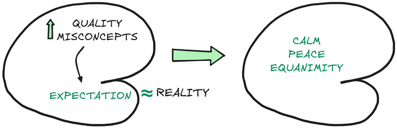 Here he was pointing straight at how our misconcepts shape our internal experience. The “disturbance” we feel comes from the friction of low-quality misconcepts creating expectations wildly different from reality.