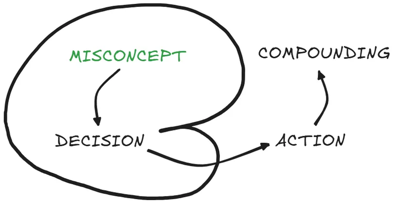 Think of misconcepts as the explanations you hold about how the world works – your mental models. I call them misconcepts as a reminder that all these mental models are wrong to some degree when compared to reality. There’s always scope to improve their quality to reflect reality more accurately.