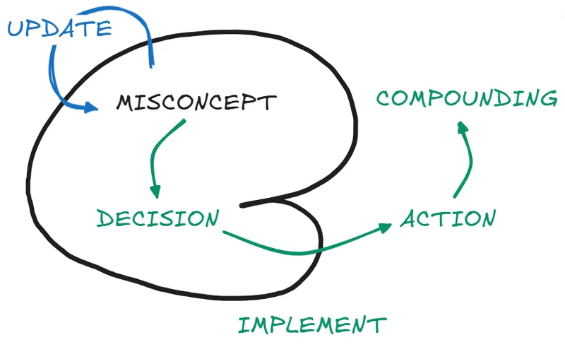 Understanding this framework simplified how I approach all the decisions in life. Instead of being paralyzed by endless options or making decisions by default, I now ask “should I implement an existing misconcept or is there an opportunity to update it first?”.