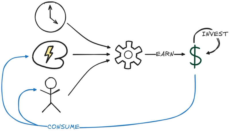 As we discussed, present consumption comes at the trade-off of future consumption. However, it is not practical to consume nothing now, we wouldn’t survive. But spending everything we earn now also means we will never escape the cycle.