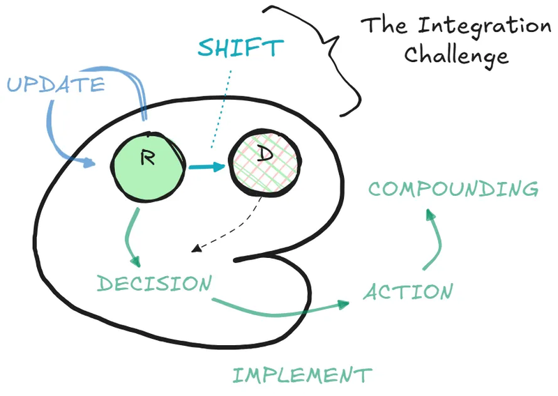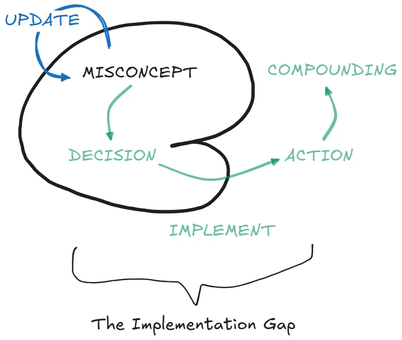 This is the first place change breaks down: I call it the “knowing fallacy” - the misconception that knowing equals being. What I discovered through my own frustrations is that our minds operate two completely separate processes: updating our misconcepts through learning, and implementing those misconcepts through decisions and actions.